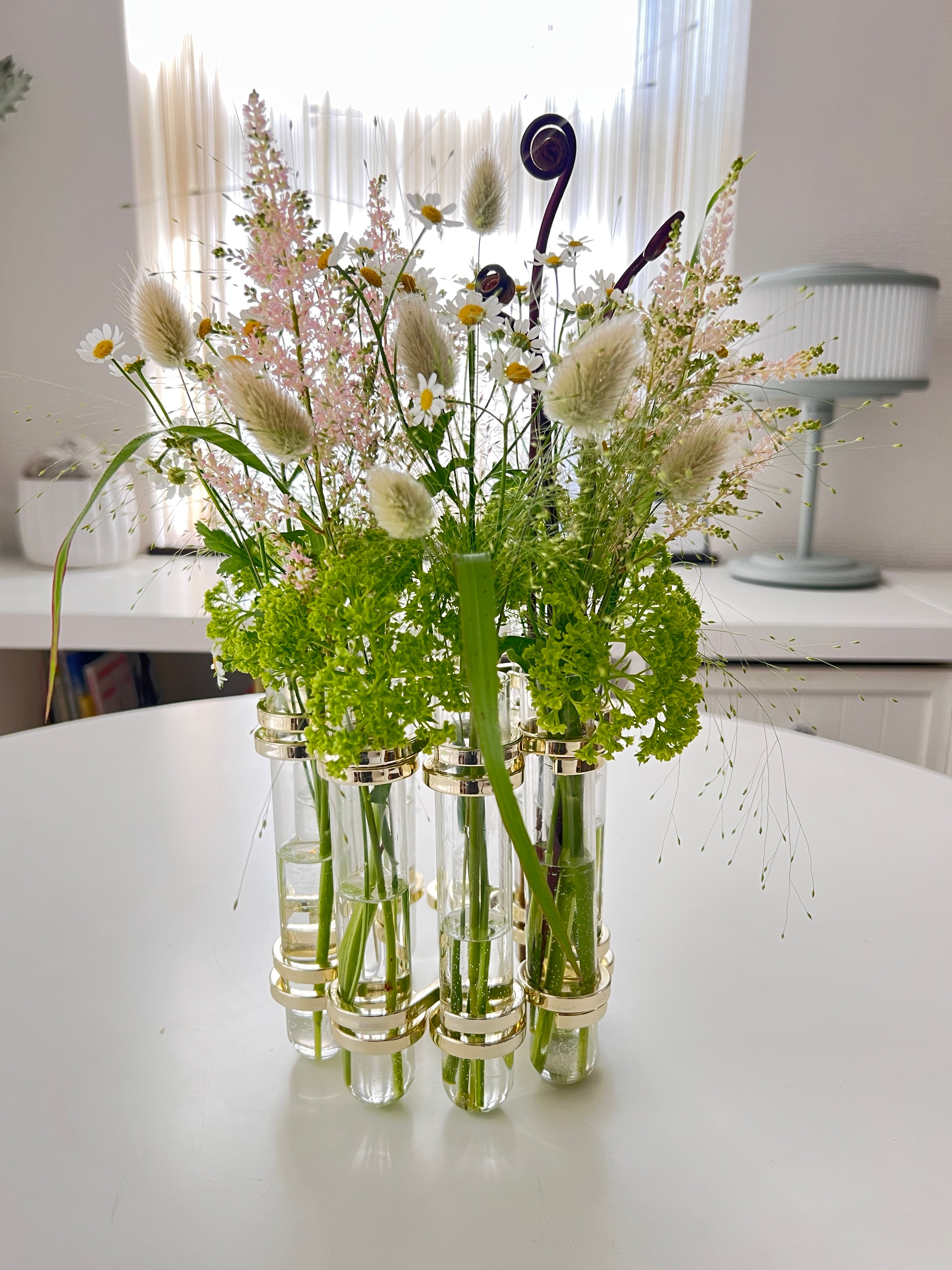 試験管のような細身のグラスが9本セットになったフラワーベースです。